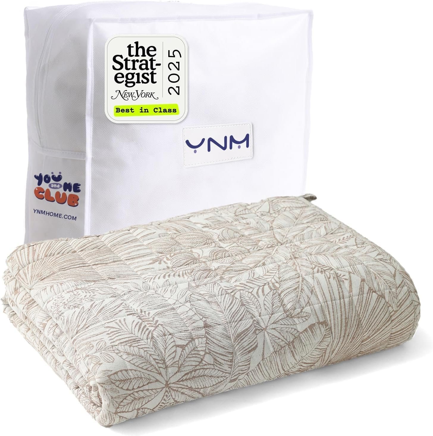 • A weighted blanket in a calming tone