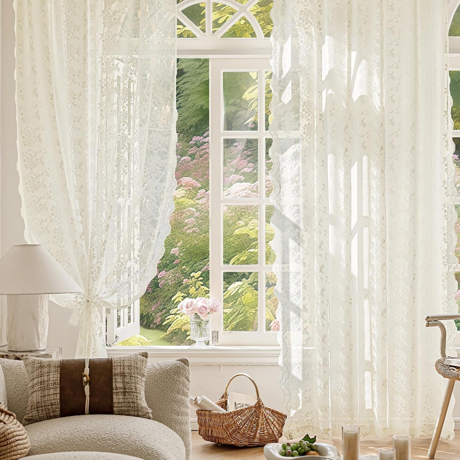 These elegant lace curtain panels bring a gentle, romantic softness to any room. Crafted using warp-knitting techniques for added stability and structure, the fabric drapes beautifully without losing its shape. The delicate floral lace pattern filters natural light while still offering a sense of privacy, creating an airy, calm atmosphere in living rooms, bedrooms, or dining spaces. Finished with classic embroidery details and bow tiebacks, they add timeless charm to both traditional and modern interiors—and make a lovely housewarming or thoughtful home décor gift for anyone who appreciates vintage-inspired style.