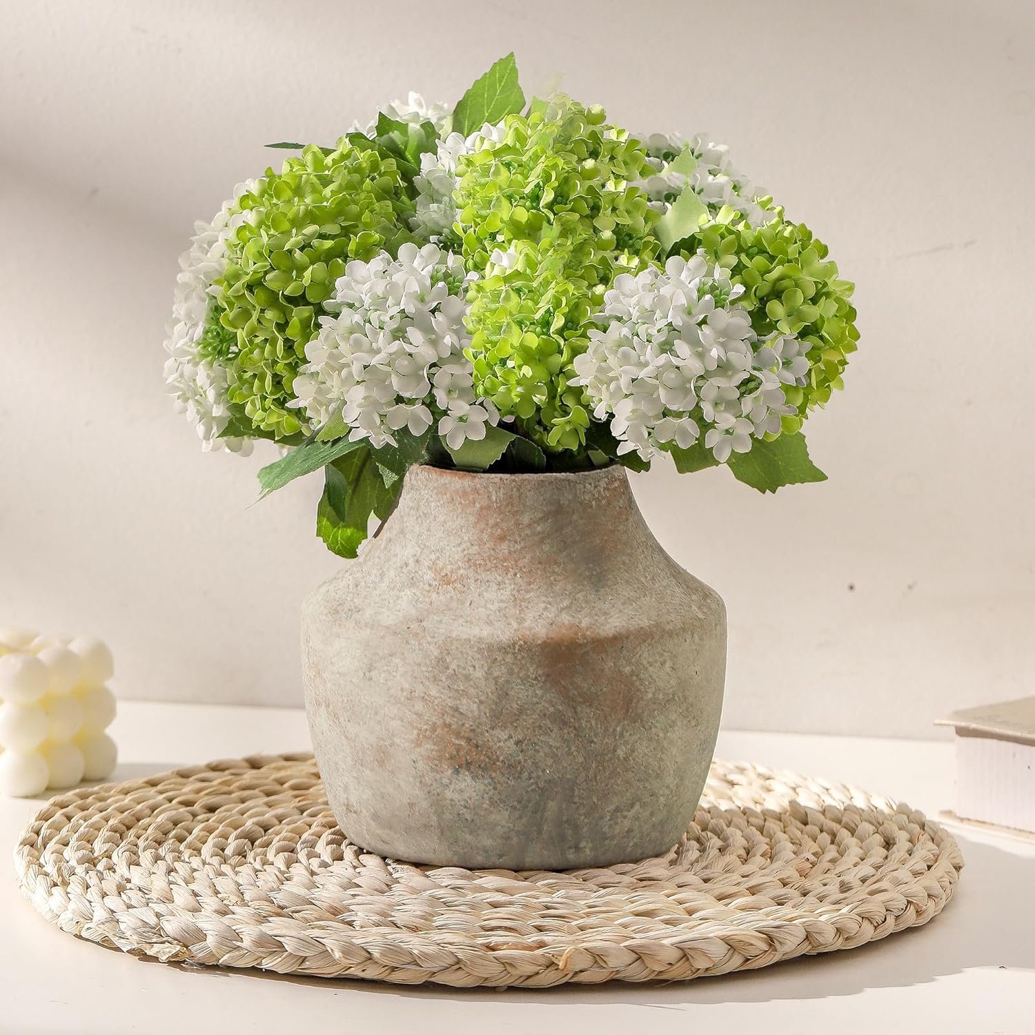 This small ceramic vase brings quiet character to shelves, tables, and bedside surfaces with its softly weathered finish and handcrafted feel. Made from terracotta-inspired pottery in a warm off-white tone, it adds gentle texture without overpowering a space. At 5.3 inches tall, it’s ideal for a single stem, dried florals, or as a standalone decorative accent. The rustic, handmade look suits farmhouse floral, coastal, and relaxed interiors alike, making it a thoughtful gift for housewarmings, hostesses, or anyone who appreciates simple, timeless home details.