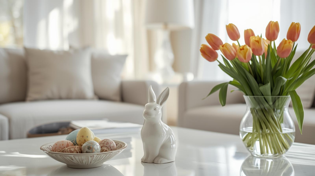 The most successful Easter decorations focus on atmosphere rather than spectacle. A few carefully chosen elements — fresh flowers, pastel accents, decorative eggs, or soft spring textiles — can shift a room from winter into something brighter and more welcoming.